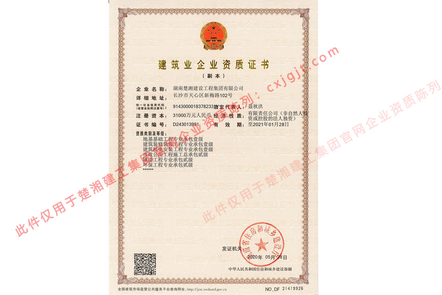 經(jīng)過60余年的長(zhǎng)足發(fā)展,楚湘建工集團(tuán)業(yè)已成為集18余項(xiàng)施工資質(zhì)于一體的綜合性建筑施工企業(yè)。